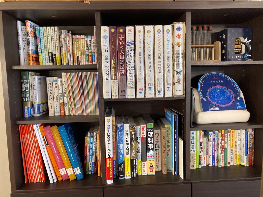本棚には本や図鑑、参考書など豊富に取り揃えております。